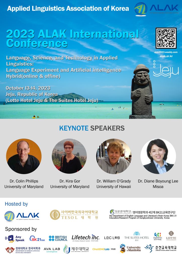 The Applied Linguistics Association of Korea is hosting the 2023 International Conference on the theme of “Language, Science, Technology in Applied Linguistics: Language Experiment and Artificial Intelligence.”