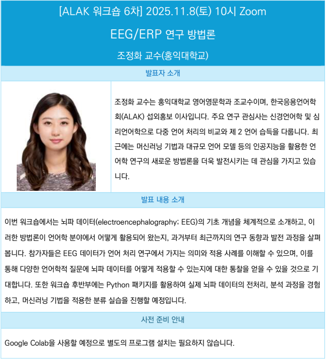 [워크숍 6차] EEG/ERP 연구 방법론 (11월 8일 토요일, 10시 Zoom)